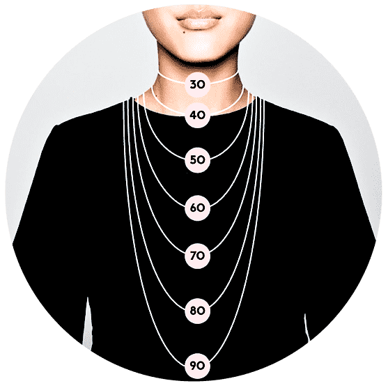 قلادات الأربش متوفرة بأحجام وأطوال متنوعة لتلائم جميع الأذواق. لتسهيل اختيار الحجم المثالي لك، قمنا بتوفير دليل بصري يوضح كيف ستظهر بعض الأطوال عند ارتدائها.